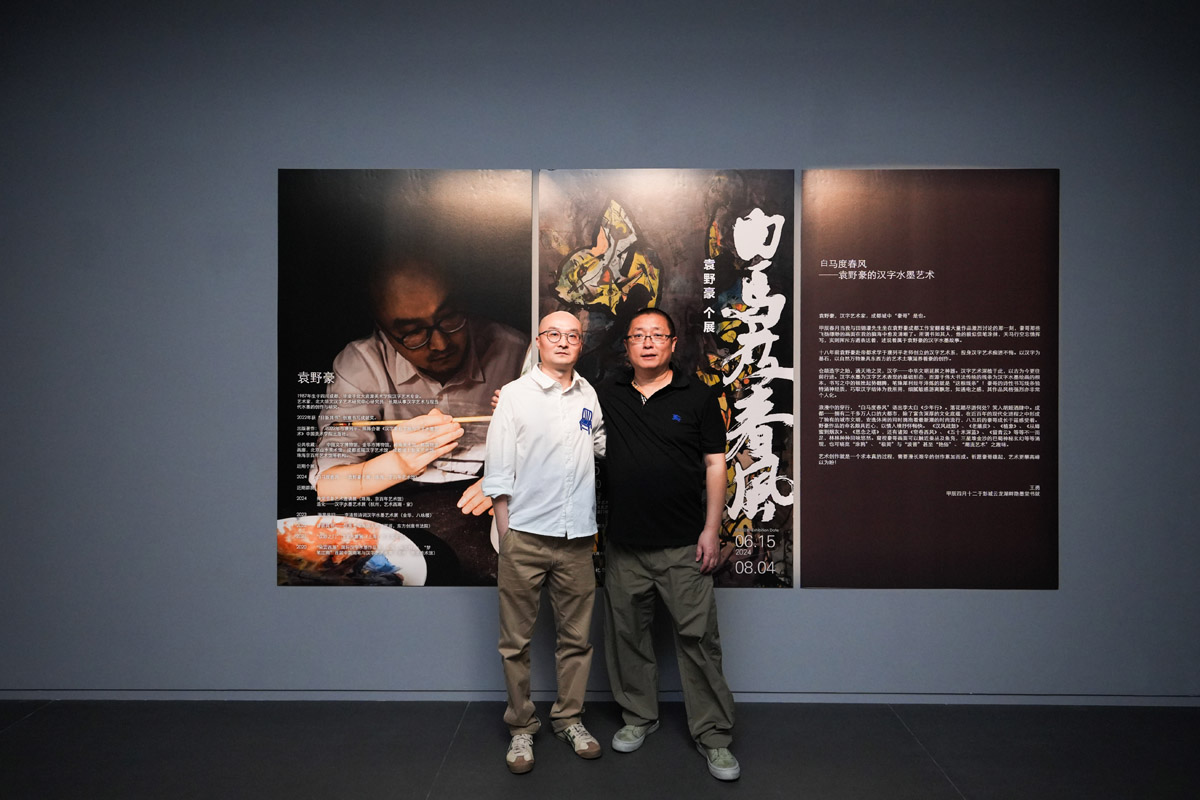 2024年6月15日下午,“白马度春风——袁野豪个展”和“花山雅集书象艺术展”于珠海京百年艺术馆如期开幕。一楼展厅为安东(安继承)、王勇两位艺术家联袂举行花山雅集书象艺术展,二楼展厅为来自成都的年轻艺术家袁野豪的个展,这两展至8月4日。
